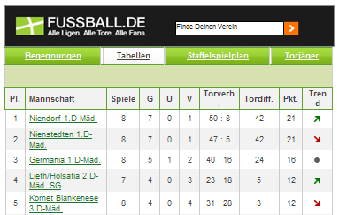 Links unter "Herbstrunde" findet ihr die Tabelle die nächsten Spiele und die Tabelle der Staffel MC03 11er Feld / Kreisklasse C-Juniorinnen Meisterschaften 2014/15.