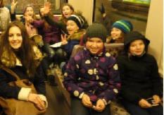 Die Fußballerinas auf dem Weg zum Dom.